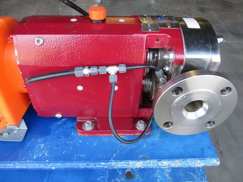 這臺高粘度轉子泵被安裝在專門加工蛋白的系統中。由于高蛋白流體沒有潤滑性,所造成的清洗難題已是老生常談:尤其是在高粘度轉子泵的密封區域。因此,如果高粘度轉子泵能夠在這個系統中被清洗干凈,將大大節省人力物力財力。