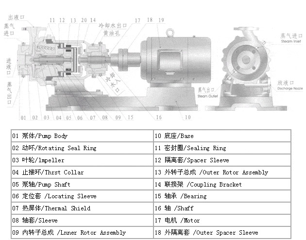 CQGB型不銹鋼保溫磁力泵(簡稱磁力泵),保溫型磁力驅動泵(保溫20℃~150℃)是靠永久磁鋼相互作用傳動,以靜密封代替動密封的一種泵。該泵結構緊湊,外形美觀,體積小,噪聲低,運行可靠,使用維修方便。